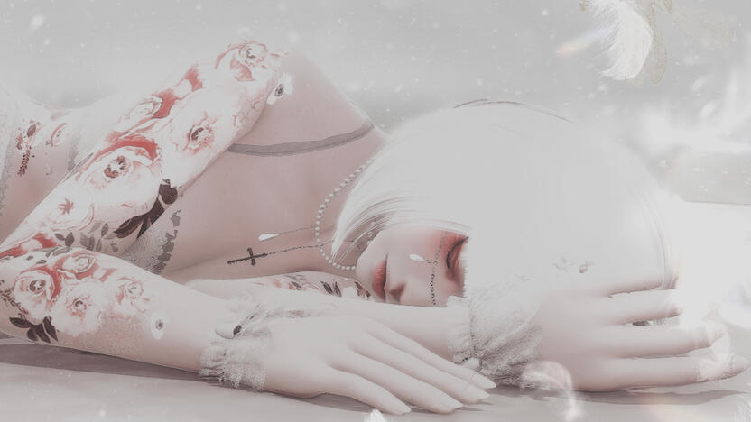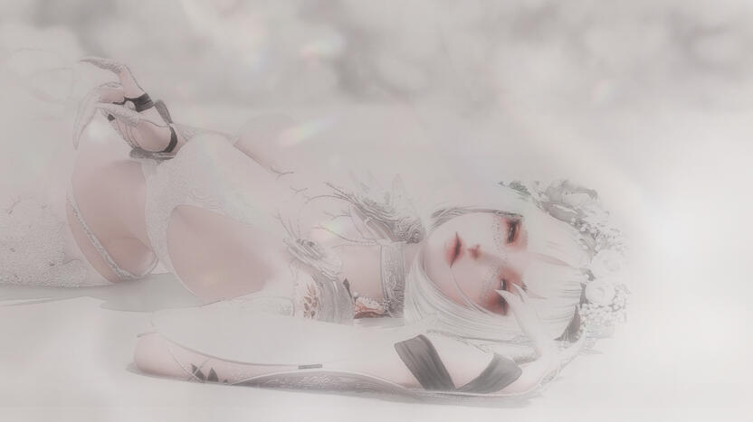 Her eyes snapped open, and she found herself looking at a white haired Au Ra with delicate features that seemed as familiar to her as a song. Her eyes were the softest shade of periwinkle blue, filled with a love so certain that it grounded her. Iridescent scales shimmered over her fair skin like pearlescent rainbows. I know you. She thought in wonderment as she reached a hand out to the vision that felt like the only real thing in the shifting mist.